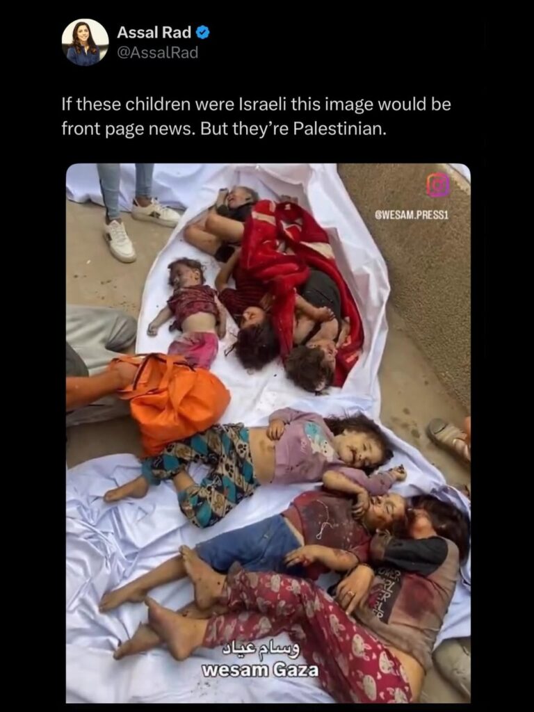 Since October 7, we in the west have been a witting and unwitting audience to Israel’s outrageous hasbara lie narrative, due mainly to western media’s faithful parrotting and upholding of it. One of the most disturbing and harmful example of this narrative bias is how they write about “safety and security”. Not once have I ever read or heard expressed in western media a concern for “Palestinian safety and security”. It’s alway “Israel’s need for safety and security”. What a joke and ignorant, twisted concept of the reality in the oPt.